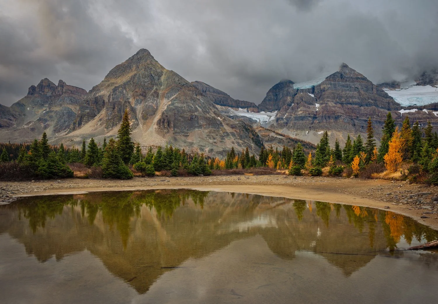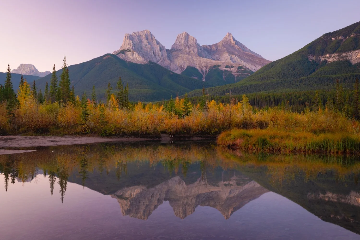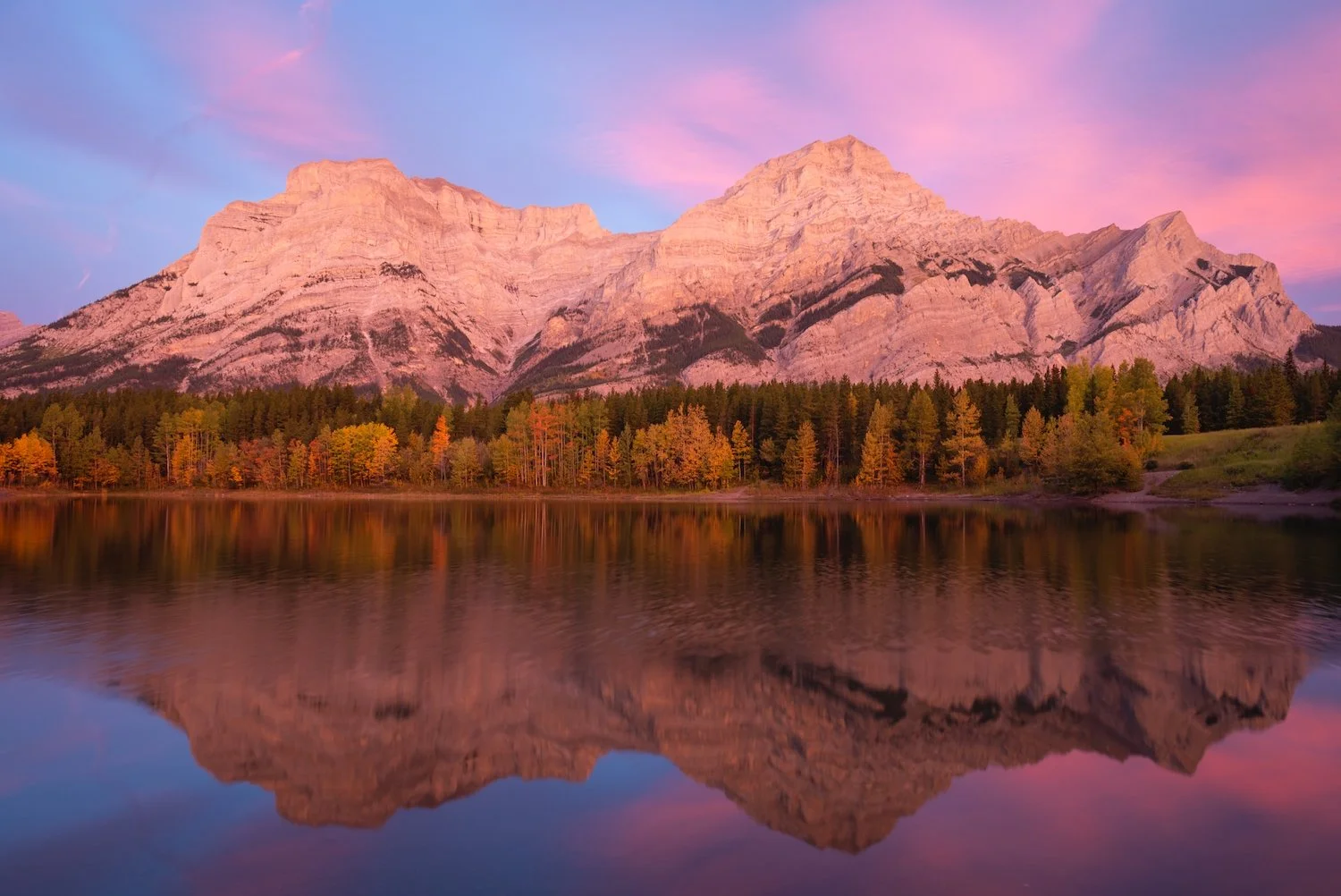 Kananaskis Country, a vast network of parks and wildland areas just south of Banff, offers a quieter alternative to the national parks while still showcasing the grandeur of the Rockies. Its valleys and peaks are laced with trails for hiking, biking, and skiing, and wildlife sightings are common, from bighorn sheep to grizzly bears. Among its most photographed spots is Wedge Pond, a small reflective lake at the base of Mount Kidd that glows with autumn larches and perfectly mirrors the surrounding peaks at sunrise. This blend of accessibility and dramatic scenery has made Kananaskis a favorite for both casual visitors and backcountry adventurers.