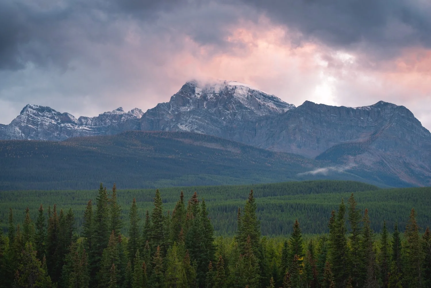 Beyond the lakes, Banff is studded with dramatic mountain landmarks. Castle Mountain, Storm Mountain, and the Three Sisters range dominate the skyline near the Bow Valley, while along the Icefields Parkway lies peaceful Herbert Lake, a low-effort gem especially striking at sunrise or sunset. From many vantage points, ranges and glacial ridgelines stretch into the distance, creating a sense of scale and grandeur few places can match in Canada’s national parks.