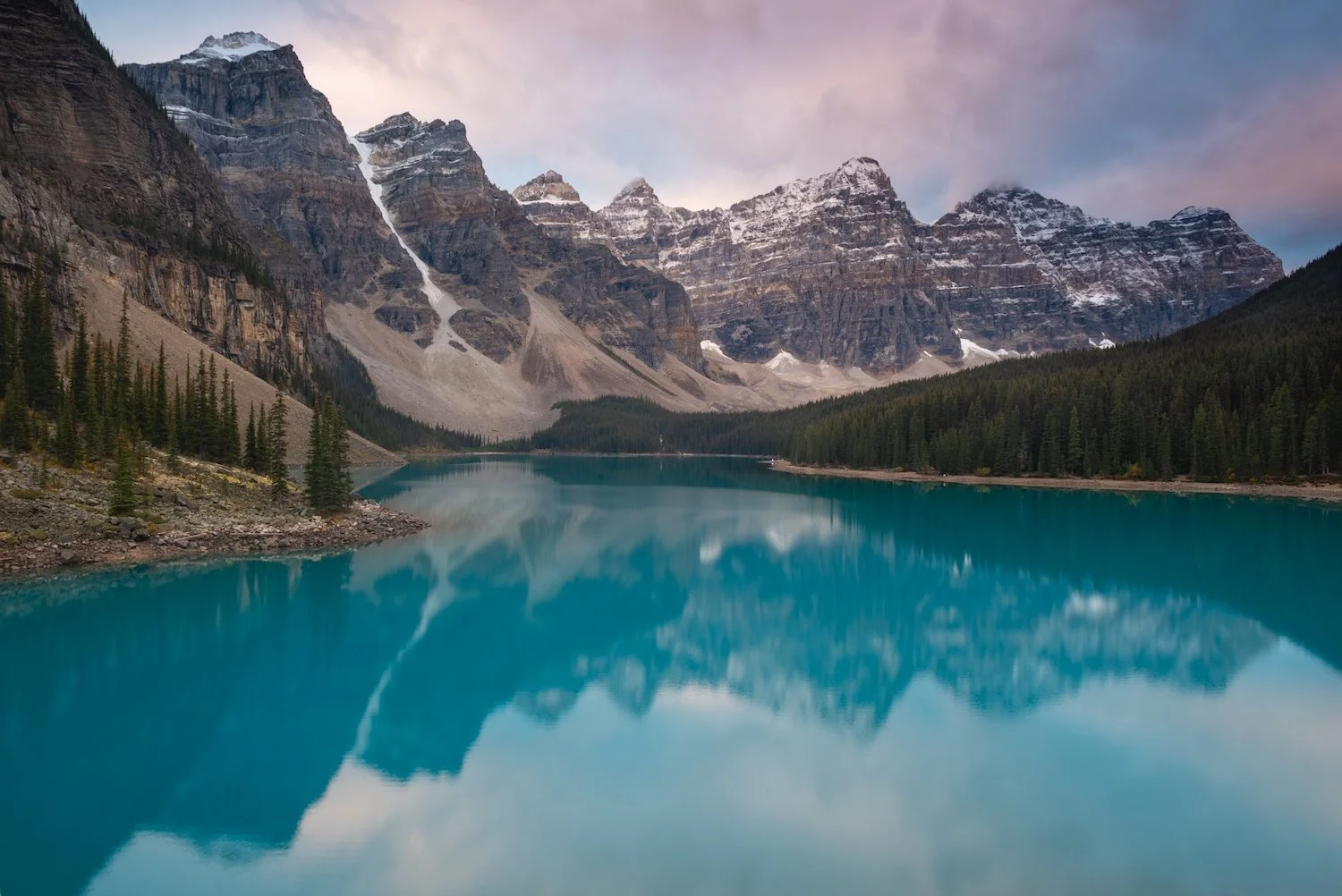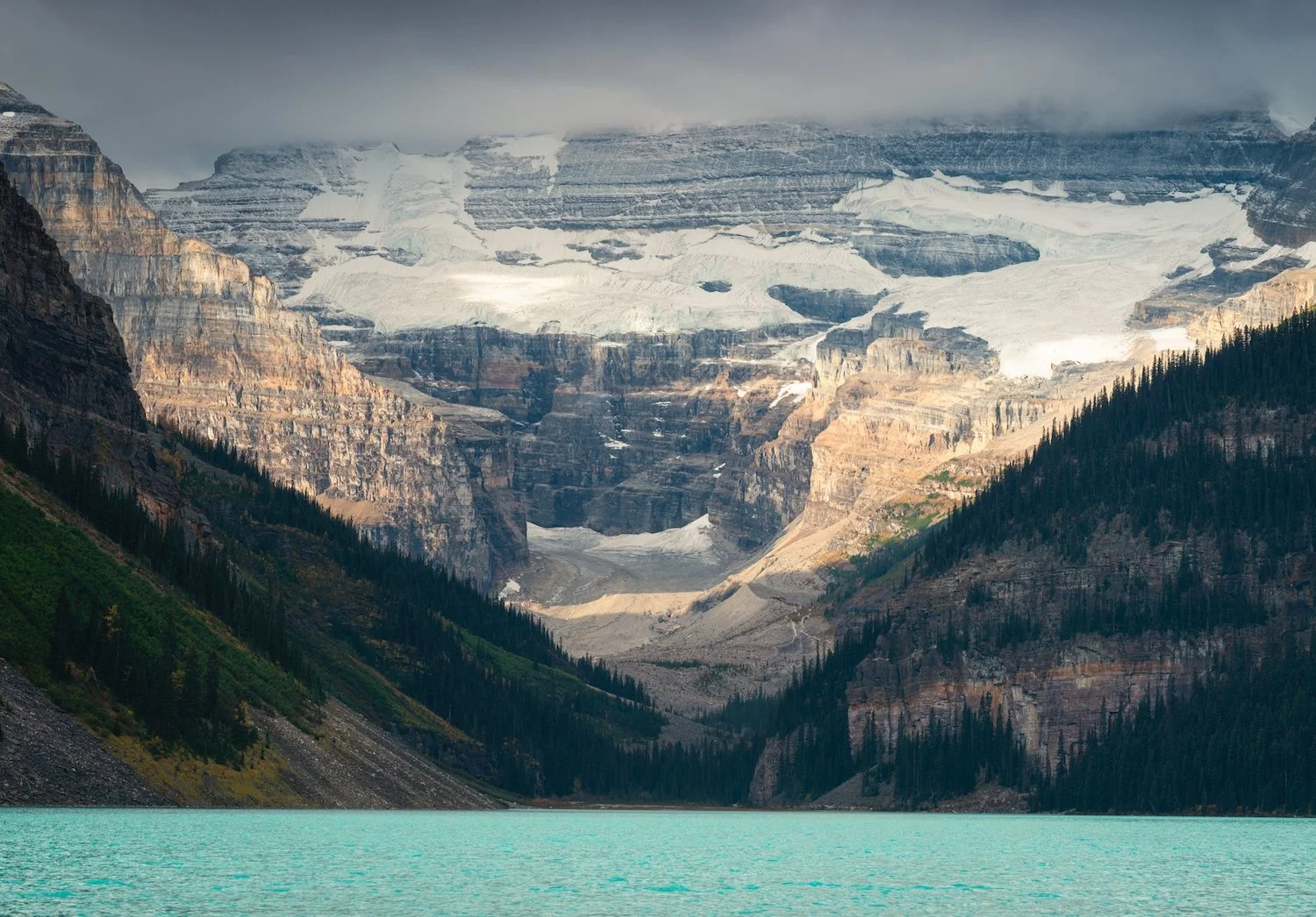 Banff National Park is Canada’s first national park, established in 1885, and spans about 6,641 km² in Alberta’s Rocky Mountains. Its rugged landscape is a mosaic of soaring peaks, glaciers, dense forests, and crystalline rivers. Within this vast terrain lie some of the Rockies’ most iconic lakes. Moraine Lake, nestled in the Valley of the Ten Peaks, glows a vivid turquoise in summer and is now accessible only by shuttle or guided transport. Closer to the Lake Louise area, trails such as the Plain of Six Glaciers (about 11.4 km return with 595 m of elevation gain) and the Lake Agnes Teahouse route offer classic Rockies hiking with sweeping alpine views.